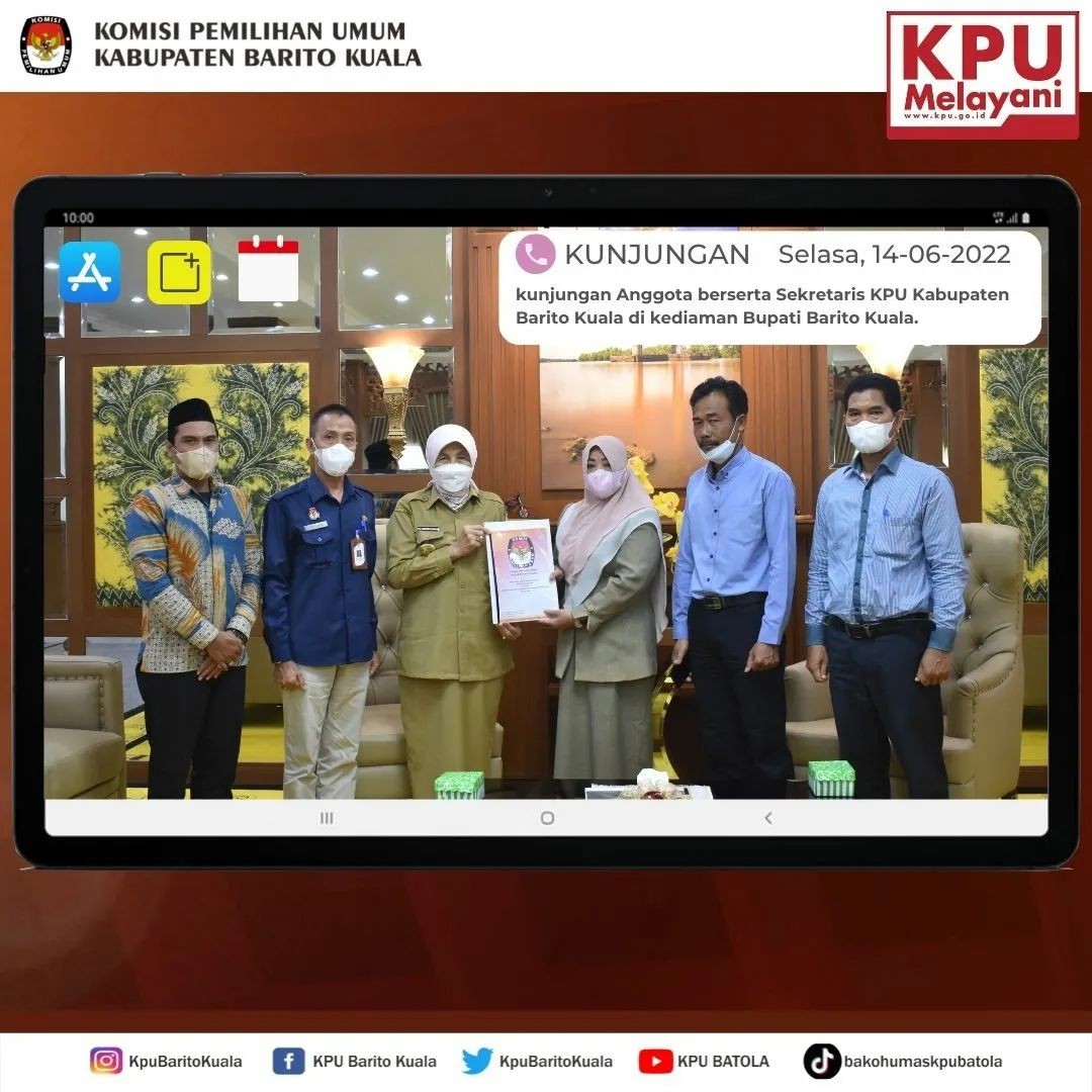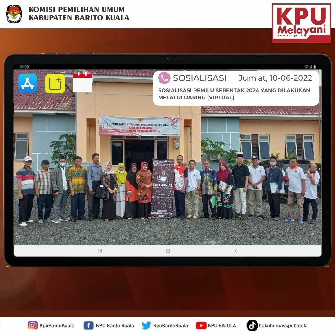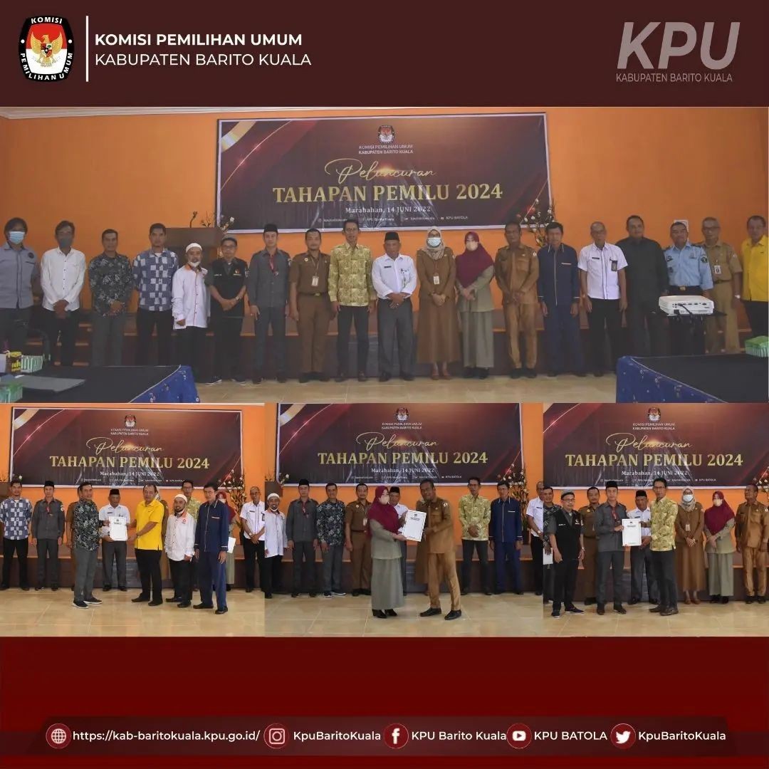 Kirab Pemilu Tahun 2024 dimulai dengan kegiatan serah terima bendera kirab dari KPU Kota Banjarmasin yang telah dilaksanakan di halaman kantor Komisi Pemilihan Umum (KPU) Kabupaten Barito Kuala Pada hari Minggu tanggal 09 Juli 2023. Adapun tamu undangan yang berhadir Forkopimda Kabupaten Barito Kuala, Organisasi Masyarakat, Perwakilan Partai Politik serta Pemilih Pemula dari 3 Sekolah (SMAN 1 Marabahan, SMKN 1 Marabahan, dan Madrasah Aliyah Marabahan). Acara kirab ini bertujuan untuk mensosialisasikan dan mengenalkan partai politik kepada masyarakat dan memberikan pemahaman mengenai proses dan tata cara teknis penyelenggaraan Pemilu Tahun 2024. KPU Kabupaten Barito Kuala mengemas acara selama 7 hari kegiatan dimana 1 hari pertama adalah acara seremonial serah terima Kirab Pemilu dari KPU Kota Banjarmasin dengan ditandai acara formal, kemudian 6 hari setelahnya dimulai tanggal 10 Juli 2023 s/d 14 Juli 2023 mengacu pada sosialisasi pemilih 2024 dengan metode Road Show Sosialisasi di 7 Kecamatan, yaitu Kecamatan Barambai, Kecamatan Marabahan, Kecamatan Anjir Pasar & Kecamatan Wanaraya, Kecamatan Anjir Muara & Kecamatan Rantau Badauh, Kecamatan Alalak. Adapun target atau tempat sasaran dari sosialisasi tersebut adalah lokasi padat penduduk seperti pasar dan tempat keramaian, menggunakan mobil pickup yang sudah terpasang stiker lengkap dengan bendera 18 Partai Politik Peserta Pemillu serta sound portable untuk mensuarakan hal-hal Pemilu Tahun 2024. Pada Hari Sabtu Tanggal 15 Juli 2023 Komisi Pemilihan Umum Kabupaten Barito Kuala mengikuti seluruh kegiatan yang disusun oleh KPU Kabupaten Tapin dalam rangkaian serah terima bendera Kirab Pemilu untuk melanjutkan secara estafet sesuai dengan rute yang telah ditentukan.