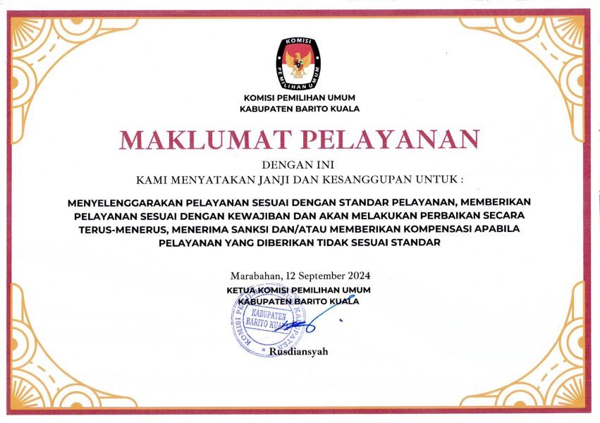 Berikut Maklumat Pelayanan KPU Barito Kuala